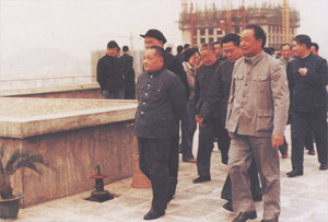 | 1984年,鄧小平同志南巡時(shí),登上集團(tuán)國(guó)商大廈,俯瞰深圳全景 | 1988年,李鵬同志視察集團(tuán)吉光電子有限公司 |