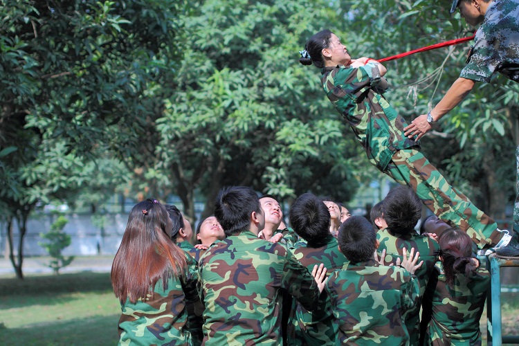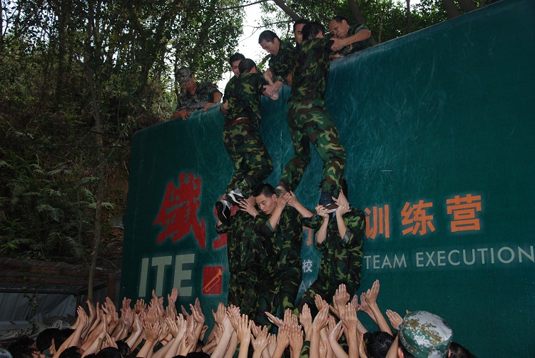 (六)畢業(yè)墻。全體團(tuán)隊(duì)的每個(gè)成員,不借助身體外的任何工具,齊心協(xié)力,在規(guī)定的時(shí)間內(nèi),翻越一面高達(dá)4.2米的光滑墻面。這是本次特訓(xùn)營(yíng)的最后一個(gè)項(xiàng)目,是對(duì)全體參訓(xùn)團(tuán)隊(duì)整合團(tuán)隊(duì)增強(qiáng)士氣和凝聚力最后的一個(gè)考驗(yàn)。
