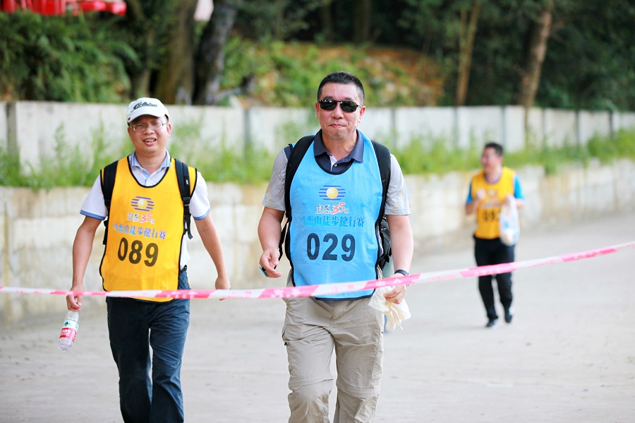 9月23日15:30,馬巒山腳下,秋日溫和,綠樹成蔭。六輛中巴車依次到達(dá),集團(tuán)俞磊副總、張瑞理副總帶領(lǐng)的總部員工和特發(fā)物業(yè)員工匯合,經(jīng)過(guò)短暫的休整和準(zhǔn)備,大家被隨機(jī)分成了紅、黃、藍(lán)、綠四只參賽隊(duì)伍。隨著一聲槍響,徒步健行比賽活動(dòng)開始,在一片歡快的笑聲中,隊(duì)員們邁著輕快的步伐,沿著徒步線路,一路向山上的終點(diǎn)進(jìn)發(fā)。本次徒步線路約7.4公里,個(gè)人成績(jī)?nèi)∧凶、女子前六名,團(tuán)隊(duì)成績(jī)?nèi)£?duì)內(nèi)前十名到達(dá)終點(diǎn)的隊(duì)員登山用時(shí)總和進(jìn)行排名。