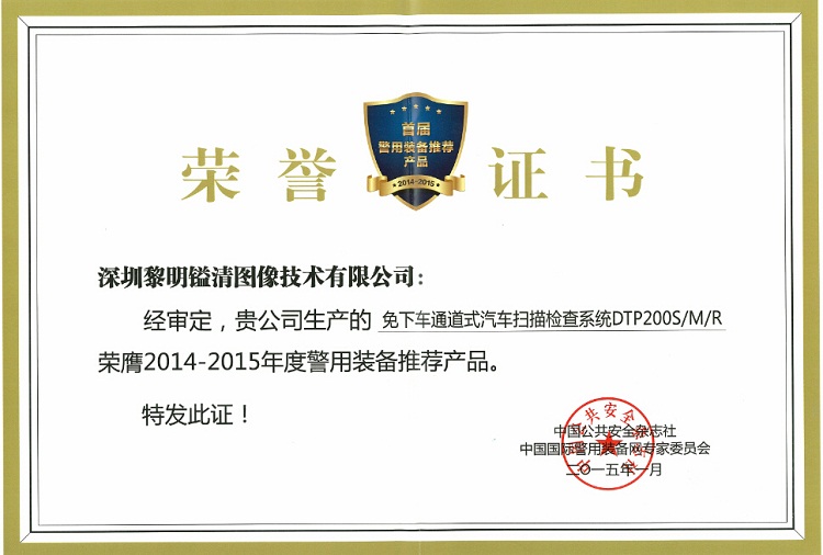 發(fā)布日期:2015/2/6 11:04:36 | 瀏覽次數(shù):6993 來源:特發(fā)黎明鎰清公司 張志彬1月7日,由中國公共安全雜志社、深圳市安全防范行業(yè)協(xié)會和CPS中安網(wǎng)聯(lián)合推出的“首屆警用裝備推薦產(chǎn)品”獎在深圳隆重揭曉。特發(fā)黎明鎰清公司生產(chǎn)的“免下車通道式汽車掃描檢查系統(tǒng)DTP200S/M/R”榮膺2014-2015年度警用裝備推薦產(chǎn)品。