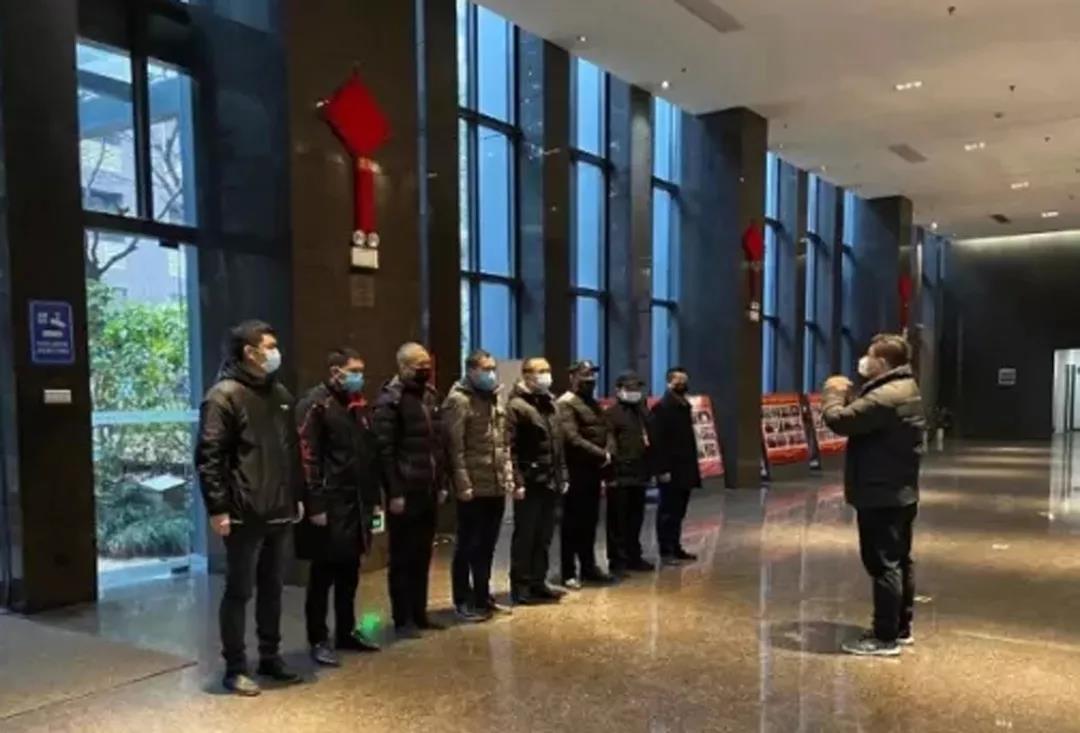 圖:特發(fā)中信項(xiàng)目員工上崗前宣誓,連夜開展系統(tǒng)性消殺工作
