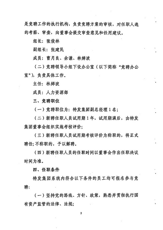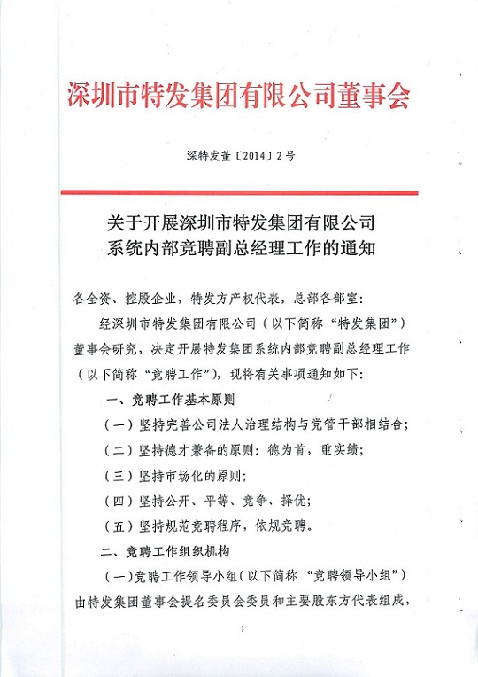 關(guān)于開展深圳市特發(fā)集團有限公司系統(tǒng)內(nèi)部競聘副總經(jīng)理工作的通知